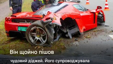 Дорожньо-транспортна пригода (1/12) Вигляд розламаного навпіл Ferrari, що лежав на дорозі, охоплений уламками та полум’ям, що сягало кількох метрів у висоту, спонукав служби