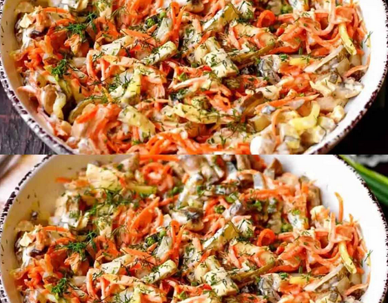 Мій улюблений салат з куркою, грибами та морквою по-корейськи! Ситний та поживний салат, який дуже подобається чоловікам!