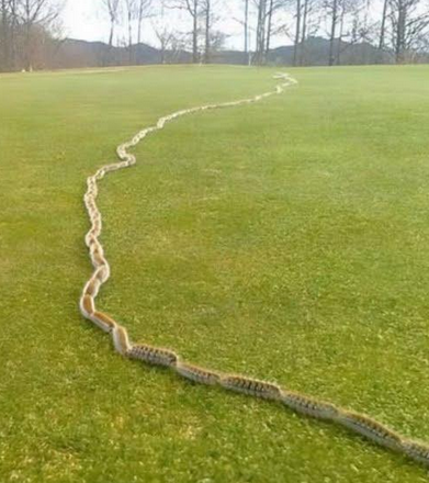 Канатоподібна форма насправді була лінією приблизно з 150 гусениць, які рухалися ідеальним гусеницею. Це заворожувало. Така поведінка, яку спостерігають у таких видів, як гусениця соснової процесії, відома як «гусеничний потяг».