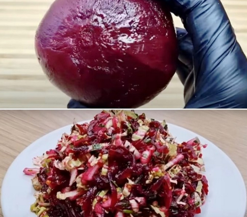 - Буряк варимо до м’якості, потім очищаємо від шкірки і трьом крупно.