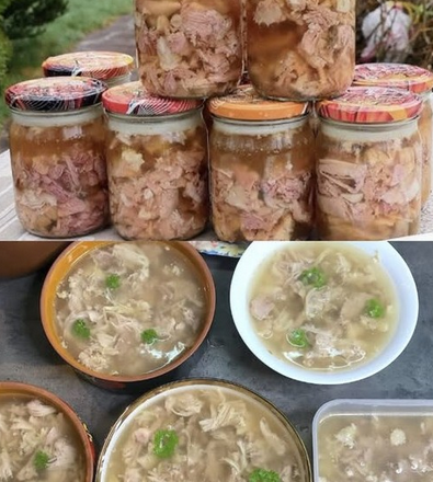 Я розлив готовий яловичий холодець у банки по 350 мл, додавши в кожну по 100 г м’яса і 200 мл бульйону. Стерилізація проходила під парою при тиску протягом години. Для банок об’ємом 0,5 літра я стерилізував би при 120 градусах протягом 75 хвилин. Після приготування швидко охолоджую до кімнатної температури та зберігаю у прохолодному місці до застигання. Рішення напрочуд просте.