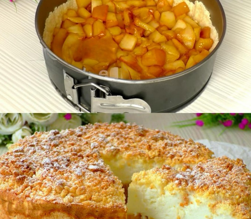 Цей десерт — справжній шедевр домашньої випічки, який поєднує в собі хрумку основу, ніжну яблучну начинку та повітряний шар крем-суфле.