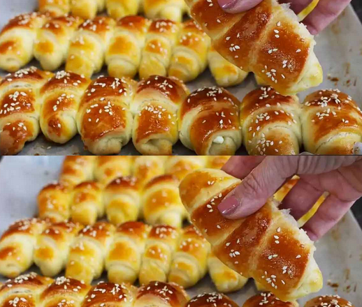 Перекладаю на деко застелене пергаментом, накриваю рушником на 30 хвилин. Потім жовток збиваю з молоком й змащую. Посипаю кунжутом. Ставлю у розігріту духовку до 80 градусів, випікаю хвилин 20–25. Потім виймаю, накриваю їх рушником й залишаю охолонути.