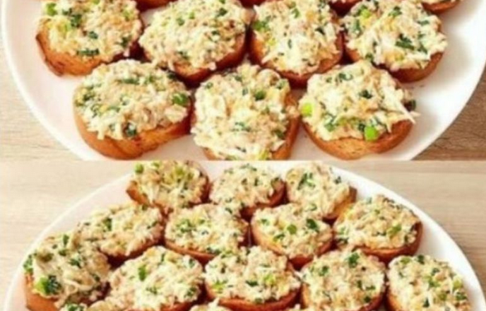 Нарізаю хліб, кладу на деко застелене пергаментом, зверху кладу шматочки масла. Відправляю у духовку при 170 градусів на 10-15 хвилин.
