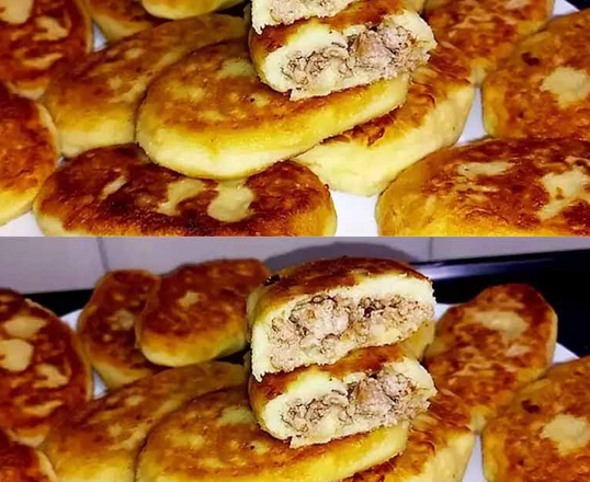 Беру 1 столову ложку тіста , роблю коржик та викладаю начинку. Защипую краї та формую зрази. Обжарюю на розігрітій олії до золотистого кольору. Дуже рум’яна скоринка і смачна соковита начинка виходить, смачного!