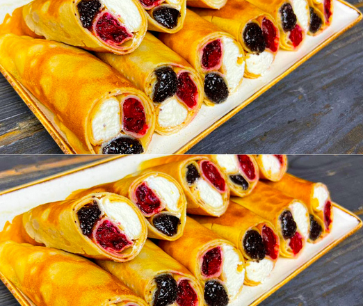 Друзі, сьогодні ми з вами приготуємо млинці з потрійною начинкою – сир, вишня та мак.