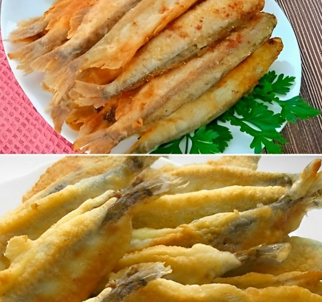 Смаження: Смажте рибу у великій кількості олії (не менше півсклянки). Обвалюйте рибок у борошні, потім у яйці і знову в борошні. Обсмажуйте з двох боків до золотистої скоринки.