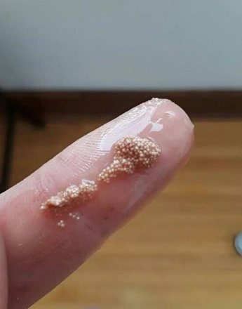 маленькі білі грудочки — злегка напівпрозорі, схожі на желе, і це точно не те, що я очікував побачити зранку. Чесно кажучи, виглядало це не дуже апетитно.