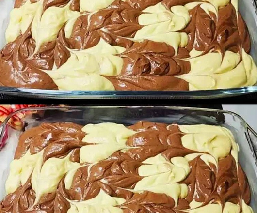 Змащую олією прямокутну форму для випікання. Викладаю світле та темне тісто, як в шахматах. Потім малюю візерунок.