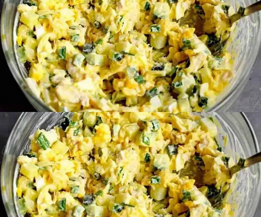 Курячу грудку відварюю у підсоленій воді до готовності, тоді охолоджую у бульйоні, потім нарізаю кубиками. Кладу у глибоку миску. Яйця варені нарізаю середнім кубиком. Огірки також нарізаю кубиками, додайте до яєць.