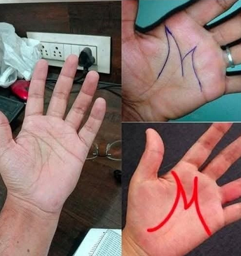 - Тепер візьміть горизонтальну лінію (лінія 3), яка починається від вашого вказівного пальця і тягнеться вгору до мізинця. Вона починається: