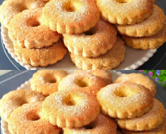 Тісто розкачую у пласт, нарізаю кружечки. Викладаю на форму для випікання застелену пергаментом. Роблю по середині печива менші дірочки. Посипаю цукром. Випікаю у розігрітій духовці при 180°C протягом 13-15 хвилин.