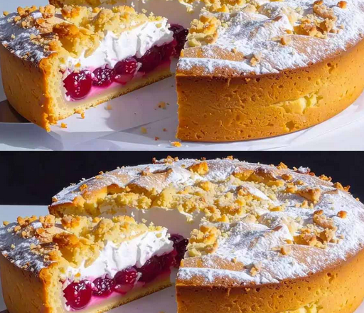 Найкращий вишневий пиріг, від якого божеволіє вся сім’я! Готую його дуже просто! Цей смачний пиріг поєднує фруктову свіжість вишень із повітряною легкістю ніжного суфлейного крему.