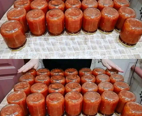 Гарячу масу одразу викладаю в стерилізовані банки, добре закручую стерилізованими кришками, перевертаю догори дном, залишаю охолоджуватись. У мене вийшло з цієї кількості інгредієнтів 30 півлітрових банок по 560 грам.