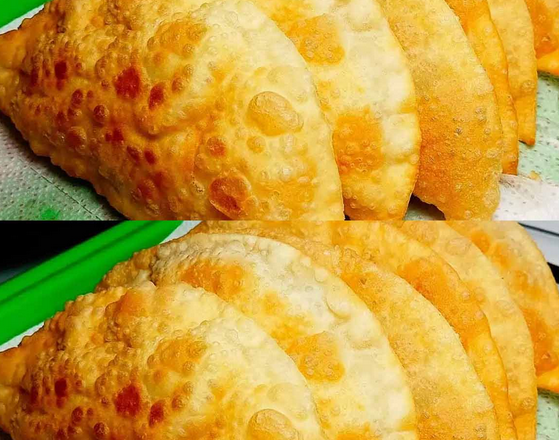 Розігріваю сковорідку з великою кількістю олії та обжарюю до золотистого кольору. Дуже смачні чебуреки!