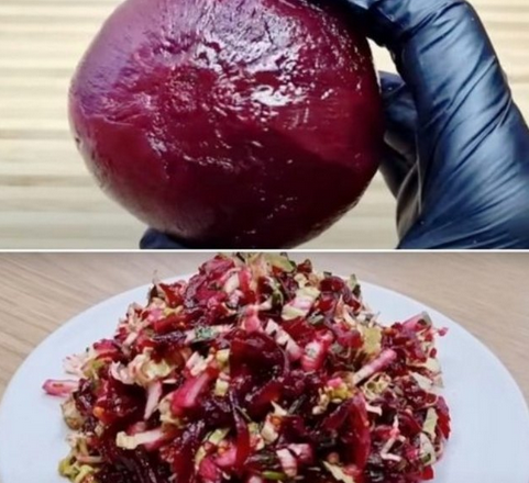 - Буряк варимо до м’якості, потім очищаємо від шкірки і трьом крупно.