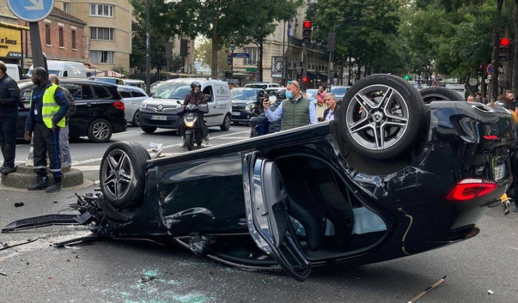 Повністю втративши керування, Audi раптово виїжджає зі смуги руху. На своїй хаотичній траєкторії автомобіль послідовно врізається у стовп, бар’єр та сміттєвий бак, перш ніж різко врізатися у стовп охорони. Але найгірше ще попереду: скутер, що обганяє з протилежного напрямку, потрапляє в пастку цієї механічної приливної хвилі.