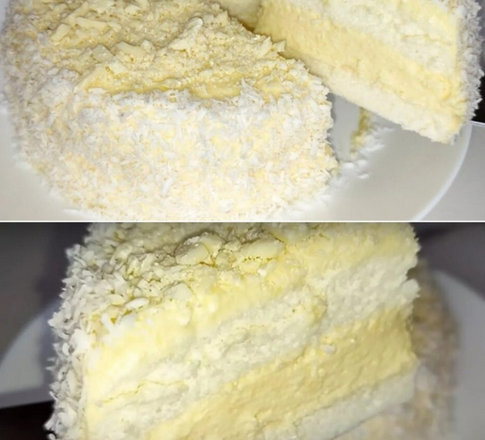 Вишуканий торт з легким кремом та кокосовою стружкою