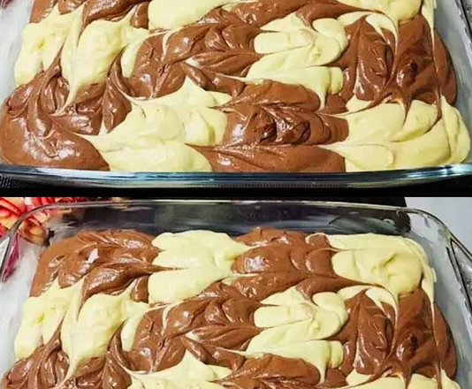 Змащую олією прямокутну форму для випікання. Викладаю світле та темне тісто, як в шахматах. Потім малюю візерунок.