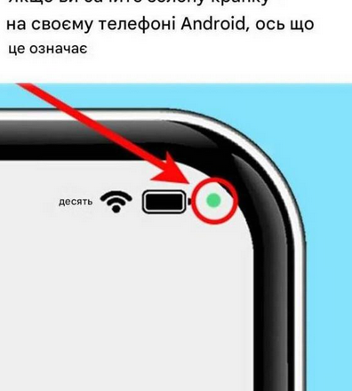 Як і iPhone, телефони Android мають візуальні сповіщення, які повідомляють користувачів про доступ до певних конфіденційних функцій. Ця зелена точка є індикатором безпеки: вона означає, що активна програма зараз використовує камеру або мікрофон.