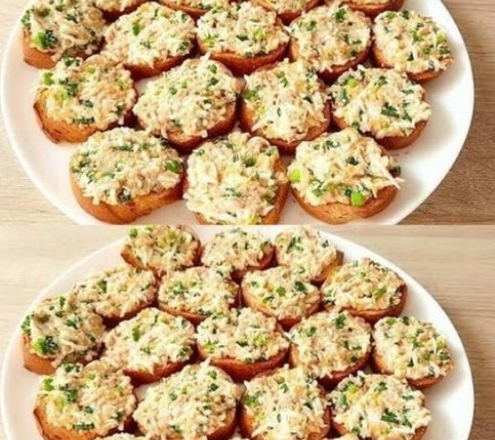 Нарізаю хліб, кладу на деко застелене пергаментом, зверху кладу шматочки масла. Відправляю у духовку при 170 градусів на 10-15 хвилин.