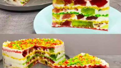 Готую яскравий торт на раз, два. Бите скло з вафлями для любителів легких, желейних десертів. Готуйте на здоров’я! Інгредієнти: Приготування: Спочатку я готую