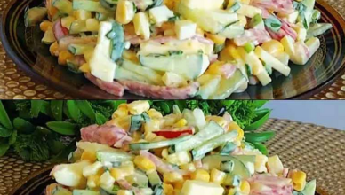 Цей салат готую через день, такий він смачний! Всі шукають цей салат на столі! Ділюсь улюбленим рецептом, який подобається усім! Інгредієнти: Приготування: Ковбасу [...]